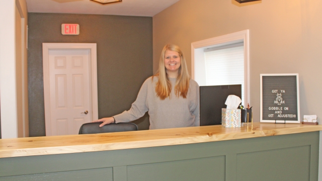 Dacia Ash stands behind the counter at her new business, Back Home Chiropractic and Wellness. She welcomes community members to stop in and introduce themselves.