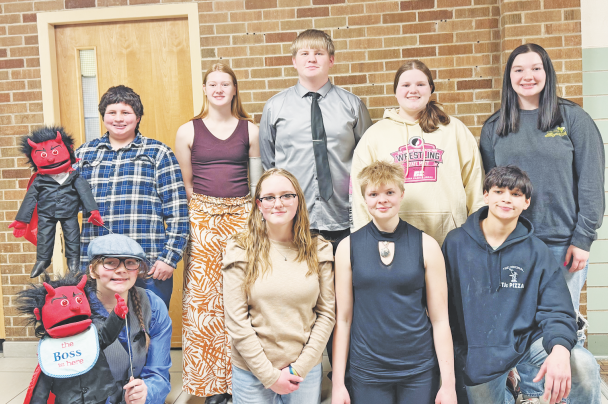 Pictured (front row) are: Hattie Ruff, Emerie Nading, Olivia Enyart and Colby Leiran and back row: Jeremiah Leiran, Isabelle White, Kaedyn Heitland, Lauren White and Brooklynn Martins; Not pictured: Brenda Gonzalez, Yazmin Lopez-Jochola and Selena Tzunux-Tzunux. (Photo courtesy Postville HS)